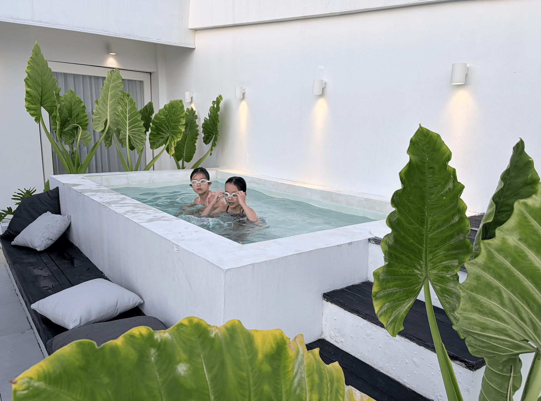 짱구의 태양 아래서 가족들과 온전히 연결되며 정말 즐겁고 충만한 에너지를 가득 채웠어요. 저희가 묵었던 방에는 옥상 위 저희만 쓸 수 있는 작은 풀장이 있었는데, 손바닥만한 그 수영장에서도 깔깔대며 즐거워하는 아이들덕에 너무 행복했습니다.
